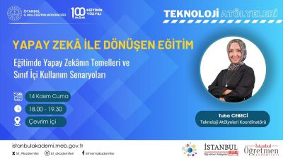 | Sayın Tuba hocam, sizden bir eğitim daha almak heyecan vericiydi. Dolu dolu, verimli ve her yeni bilgi karşısında heyecandan mutlu olduğum bir eğitim oldu. Emeğinize sağlık. Ìyiki Ìstanbul, iyiki Ìstanbul il Milli Eğitim Müdürlüğü, iyiki Sayın Müd... | |
