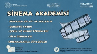 Görsel dilin inceliklerini kavramak, görsel okuryazarlık becerileri kazanmak, sinema literatürüne ve film diline aşinalık sağlamak, böylece birer eğitim profesyoneli olan öğretmenlerimizin kişisel ve mesleki becerilerine sinemanın imkanlarını kullanarak katkı sunmak amacıyla düzenlenen sinema akademimiz; faaliyetlerine devam ediyor.