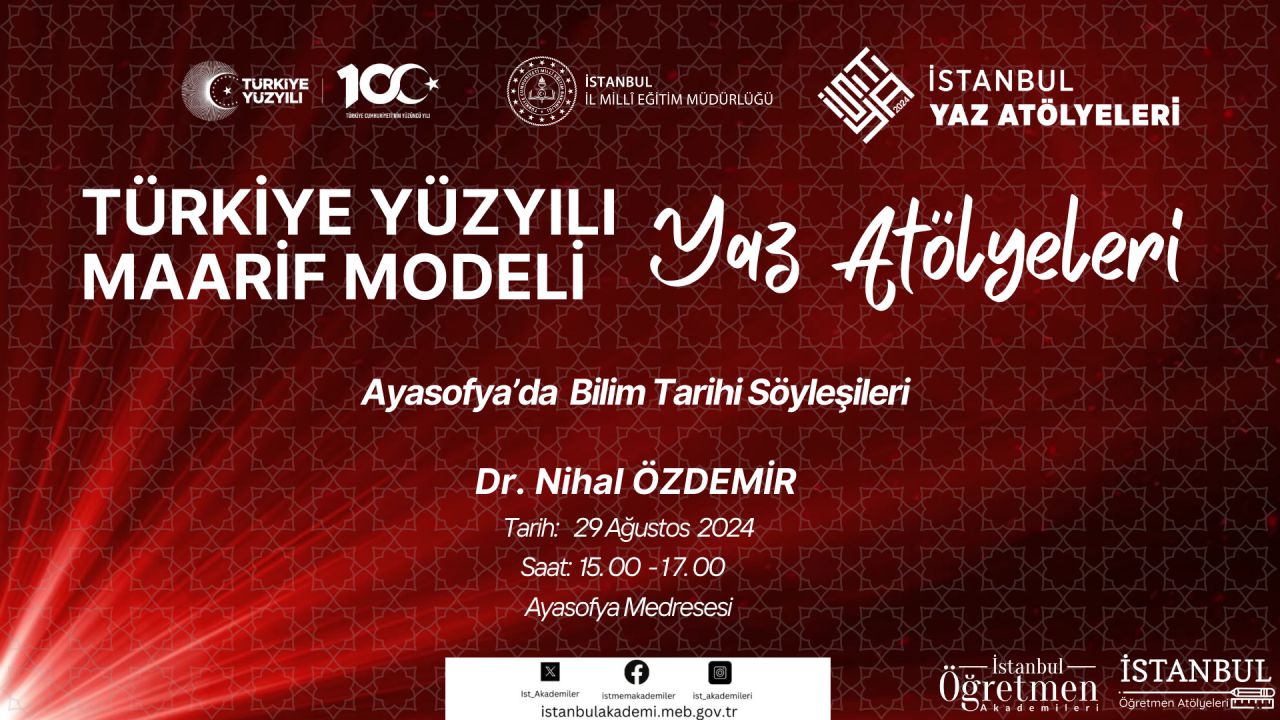 Dünya Tarihin en kadim şehirlerinden birinin İstanbul'un kalbinde ışık saçan bir yapı ve bilimle maneviyatın buluştuğu bir Medrese. Bilim ve Tarihin buluştuğu ve Fatih Sultan Mehmet'in İstanbul'u fethinin akabinde ilk kez 1466 yılında Ayasofya'nın kuzey tarafına inşa edilen bir Osmanlı Külliyesi. Defalarca restorasyon geçiren, yıkılan ve 2022 yılında Kültür ve Turizm Bakanlığı Vakıflar Genel Müdürlüğünce ihya edilmiş olan tarihi yarımadanın merkezinde sessiz ancak güçlü biçimde yükselen Ayasofya Medresesinde gelin hep birlikte Bilim Tarihini Medresenin Ali Kuşçu Salonunda FSMVÜ Prof. Dr. Fuat Sezgin İslam Bilim Tarihi Enstitüsü Müdürü Dr. Nihal ÖZDEMİR ile birlikte konuşalım, öğrenelim.