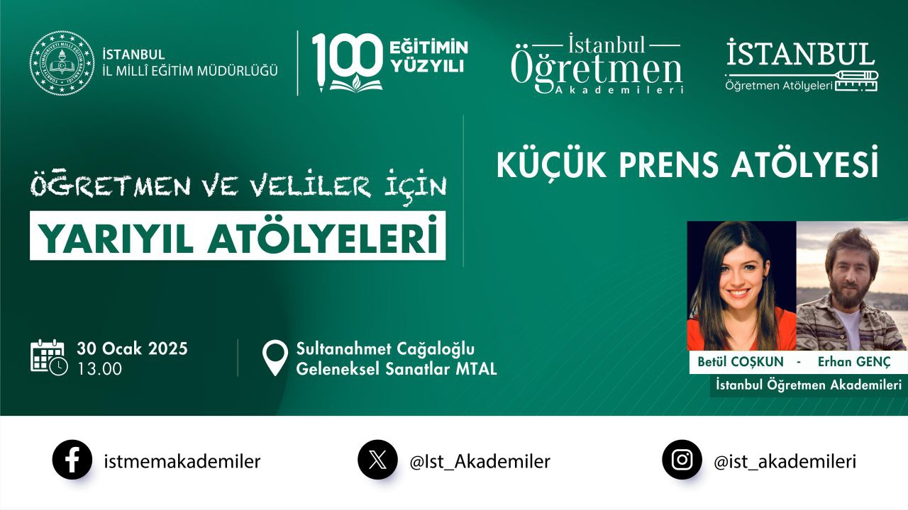 Bu atölyede dünyaca ünlü bir kitap olan Küçük Prens’in izinde yaratıcı okuma ve yazma ile drama ve terapinin ortak paydasında buluşarak dostluk, sevgi, bakış açısı ve bağ kurma temaları üzerine yapacağımız bir keşif yolculuğuna çıkacağız.