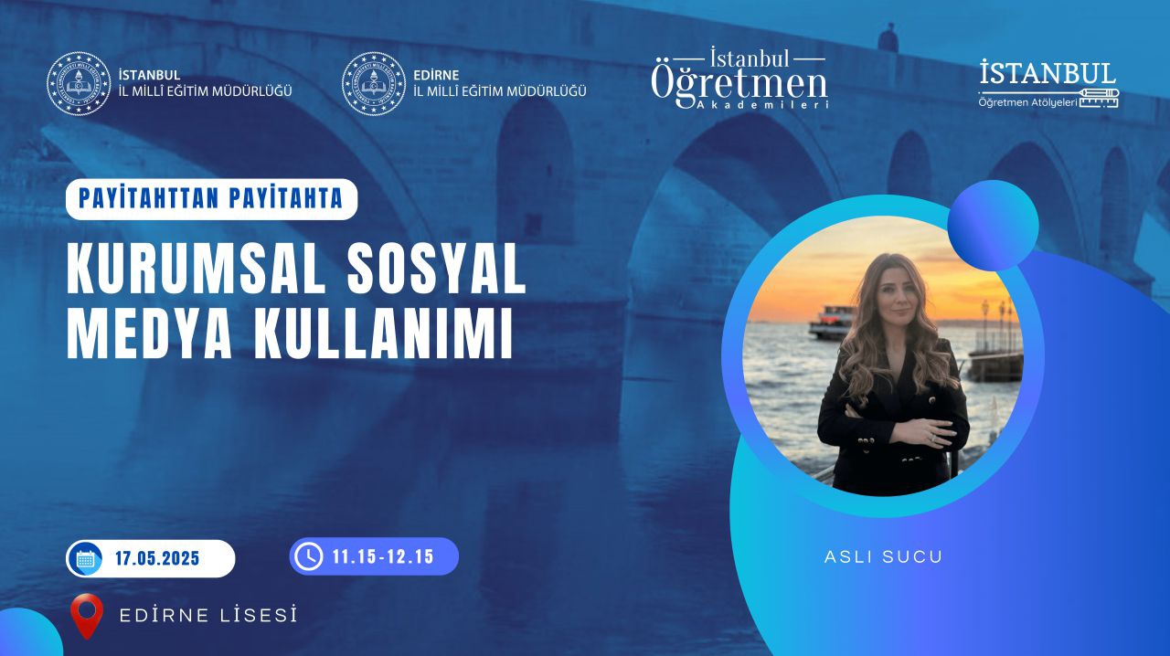 Payitahtahttan Payitahta: İstanbul Öğretmen Akademileri ve Atölyeleri ile eğitim, tarih ve kültür yolculuğu programında Yeni Medya ve Gazetecilik Atölyesi eğitiminde Kurumsal Sosyal Medya Kullanımı konu başlığıyla Edirne'deki öğretmenlerimizle buluşuyoruz.