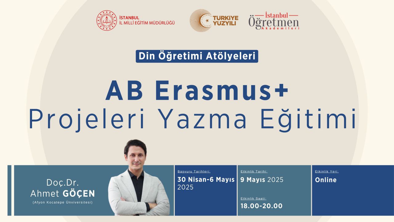 AB ERASMUS projeleri genel bilgilenirme ve proje yazma süreci hakkında online olarak eğitimimiz yapılacaktır. Eğitimin yapılacağı platformun linki, katılımcıların maillerine gönderilecektir.