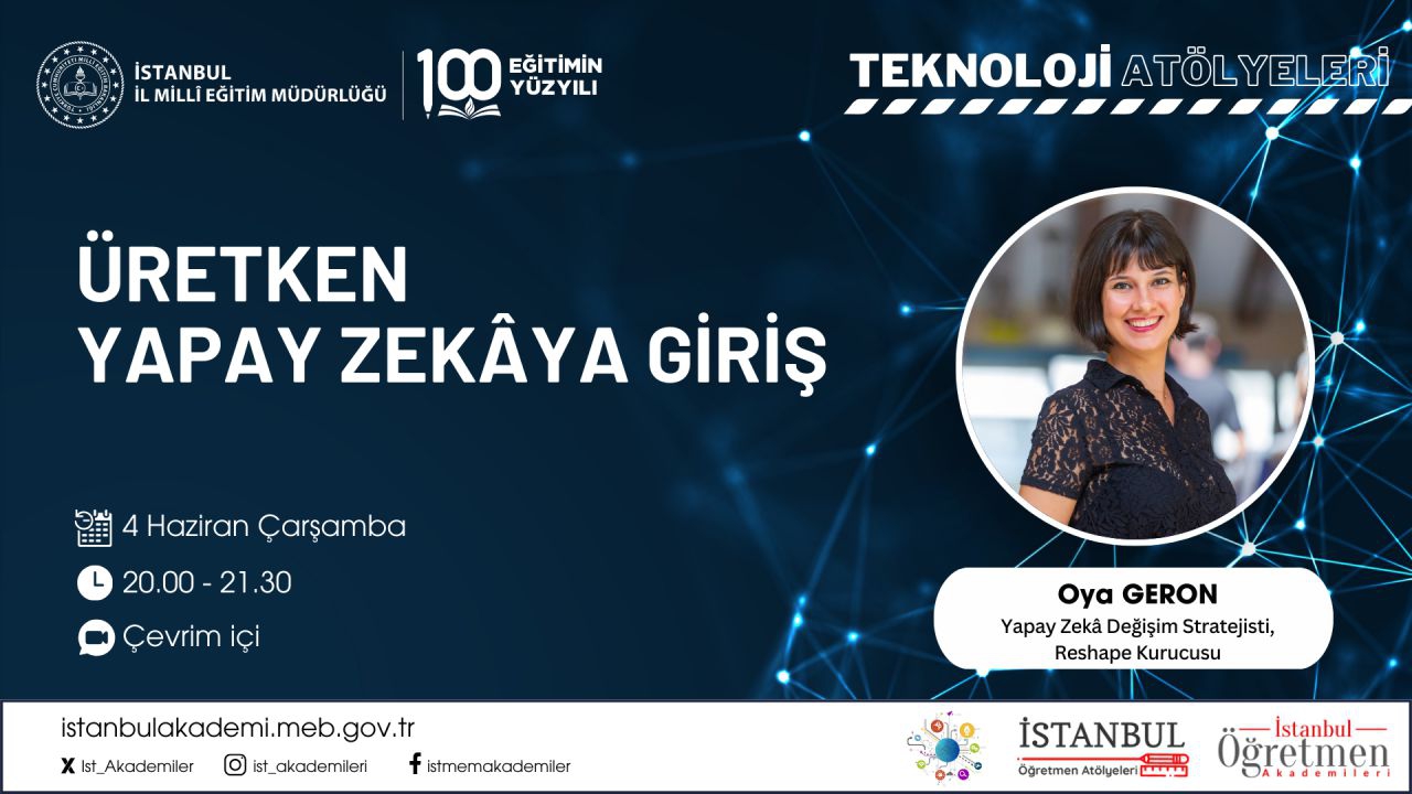Yapay Zekâ Dönüşüm Lideri Oya Geron tarafından verilecek bu eğitimde Üretken Yapay Zeka Uygulamaları ile nasıl etkili ve eğlenceli ders tasarımları yapılabileceği aktarılacaktır.