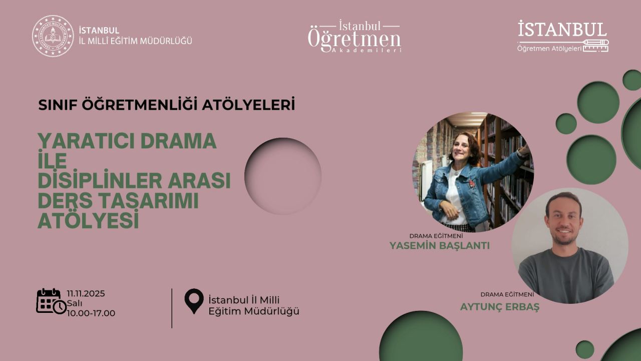 Yaratıcı Drama ile Disiplinler Arası Ders Tasarımı Atölyesi, ilkokullarda görev yapan öğretmenlerimize yönelik olarak düzenlenecektir.
