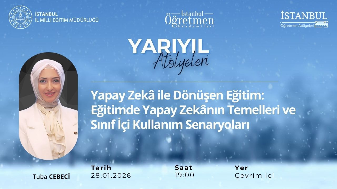 Eğitimde yapay zekâ teknolojilerinin yükselişi, öğretme ve öğrenme süreçlerini köklü bir dönüşümden geçiriyor. Bu eğitim, öğretmenlerimizin yapay zekâ kavramlarını doğru biçimde anlamalarını, mevcut eğitim uygulamalarındaki yansımalarını keşfetmelerini ve sınıf içi süreçlerde güvenli, bilinçli ve etkili kullanım için gerekli farkındalığı kazanmalarını amaçlamaktadır.