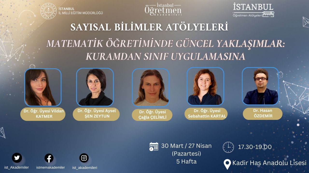 Sayısal Bilimler Atölyeleri kapsamında düzenlenen “Matematik Öğretiminde Güncel Yaklaşımlar” eğitimi, matematik öğretmenlerinin alan bilgisi ile pedagojik alan bilgisini güncel kuramsal ve uygulamalı yaklaşımlar doğrultusunda güçlendirmeyi amaçlamaktadır.