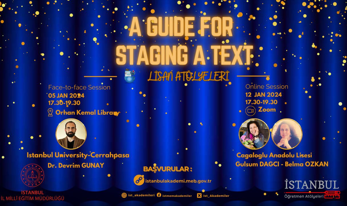 Lisan Atölyeleri tarafından yabancı dil öğretmenlerine yönelik hazırlanan atölye çalışması 2 haftalık hibrit bir çalışma olarak gerçekleştirilecek. 5 Ocak 2024'te Orhan Kemal İl Halk Kütüphanesinde yüz yüze; 12 Ocak 2024 tarihinde çevrimiçi gerçekleştirilecek çalışmaya https://istanbulakademi.meb.gov.tr/SysOs110.php?pID=1379 adresinden başvuru yapılabilir.