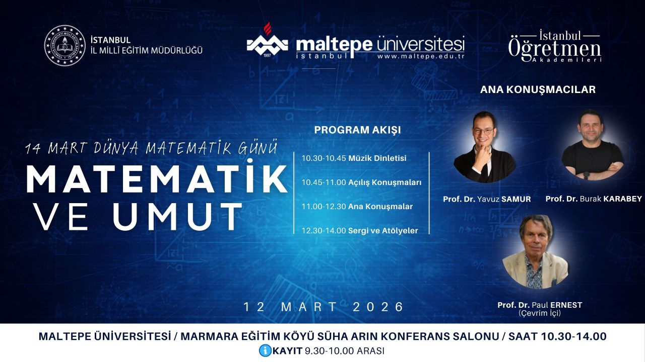 İstanbul İl Millî Eğitim Müdürlüğü ve Maltepe Üniversitesi iş birliğiyle Dünya Matematik Günü, bu yıl “Matematik ve Umut” temasıyla ilham verici bir programla kutlanıyor.