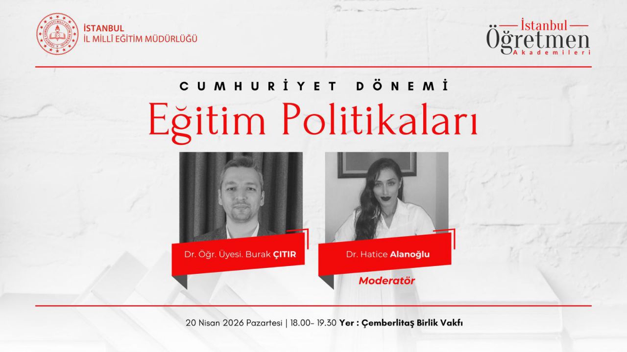 Programda, Cumhuriyet'in kuruluşundan günümüze Türkiye'de eğitim politikalarının oluşumu, dönüşümü ve toplumsal etkileri tarihsel bir perspektif içinde değerlendirilecektir. Sultanbeyli Çok Programlı Anadolu Lisesi Tarih Öğretmeni Dr. Hatice Alanoğlu'nun moderatörlüğünde, Sakarya Üniversitesi öğretim üyesi Dr. Burak Çıtır'ın sunumuyla gerçekleştirilecek programa başvurularınızı bekliyoruz.